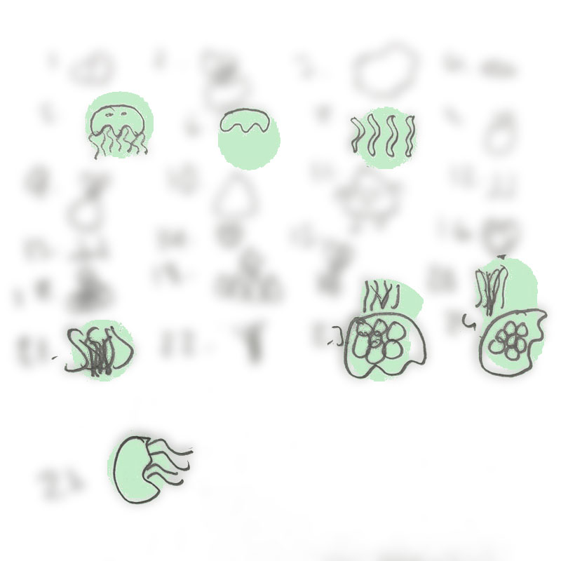 These show the drafts of the sketches in the computer until I got closer to the correct tentacle.