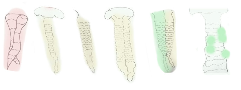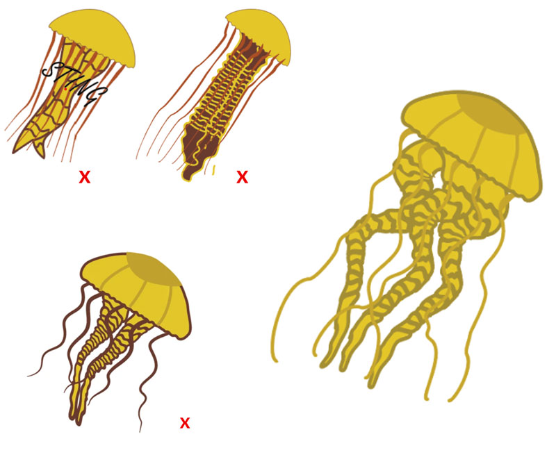 I played around with the inner jellyfish tentacles being together versus apart. I had drawn most of the tentacles together, but I did not like how it looked, especially when I drew them together in Illustrator. I did one drawing of them apart and I really liked it.