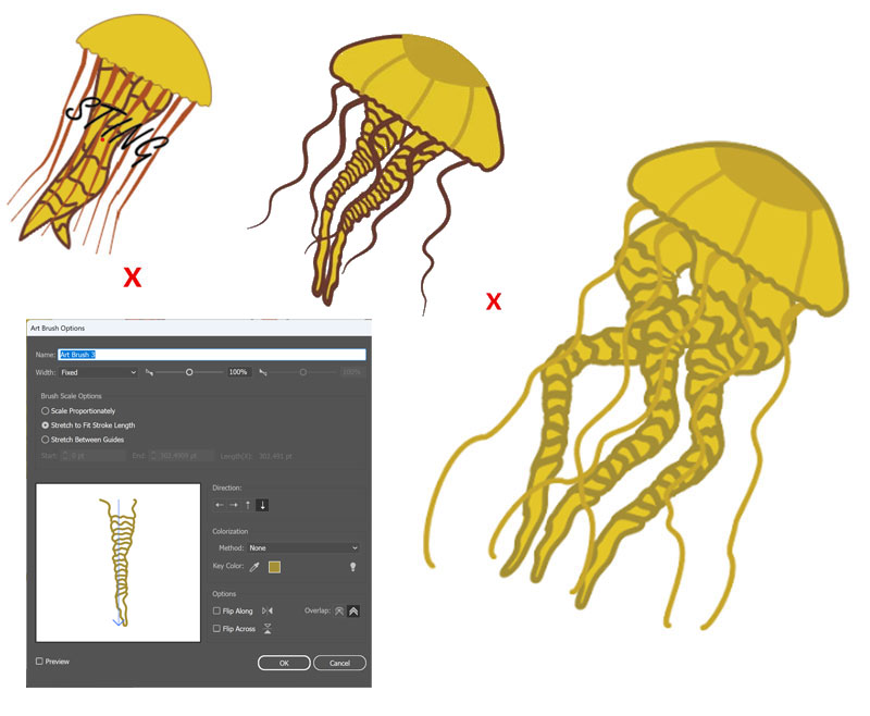 I had originally had the tentacles warped, but after talking with a mentor, I decided to change the tentacles into an art brush. They look more natural and flowy with the art brush than they did with the warp.